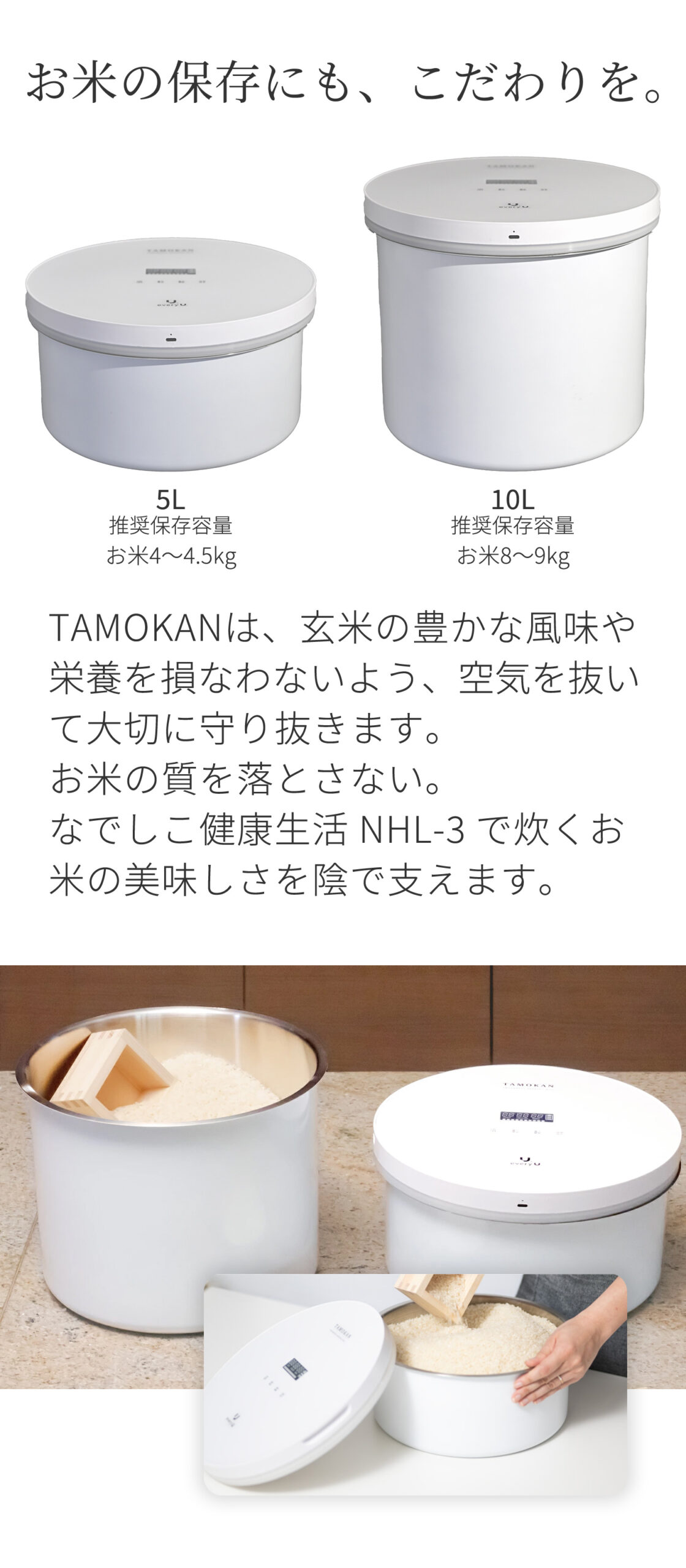 なでしこ健康生活 NHL-3と真空保存米びつ TAMOKANのセット